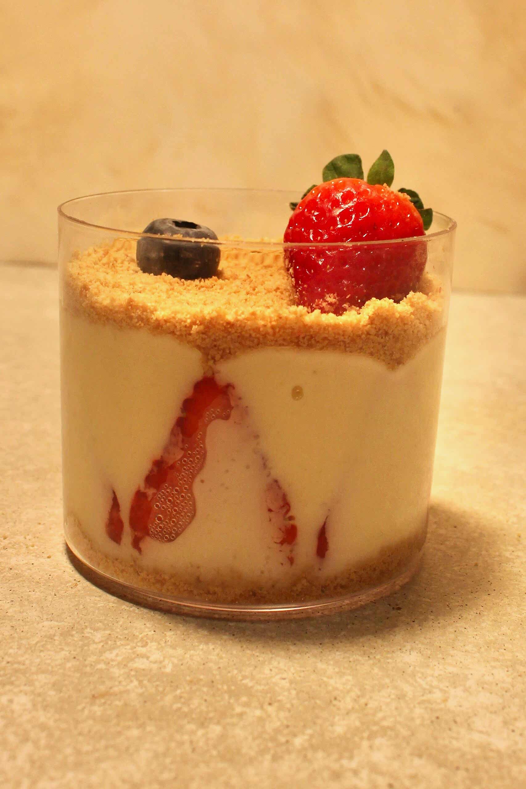 Üstte yer alan taze çilek ve yaban mersini ise doğallık ve tazelik hissini tamamlar.